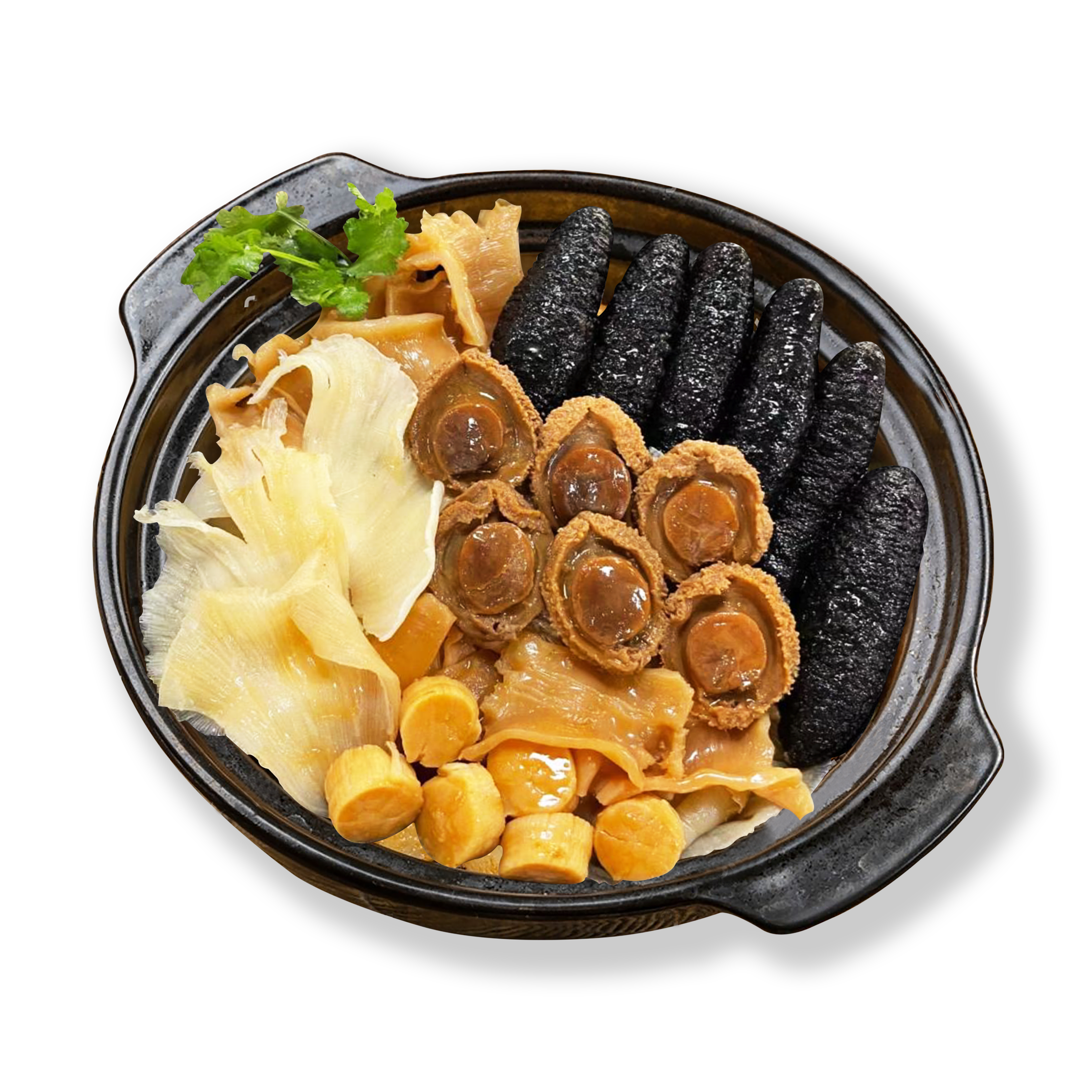 南非鮑25頭(6隻) 土耳其參70頭(6條) 牙揀翅10-12寸(150g) 瑤柱80頭(6粒) 鴨掌(8隻) 燒肉(50g) 蹄筋(6條) 花膠(100g) 魚唇(200g) 雞(250g) 花菇(180g) 粉葛(50g) 栗子(180g) 鮑汁(1300g) *凍品類商品因需恆溫保存,目前不提供送貨上門服務,僅限顧客自行前往門市取貨。