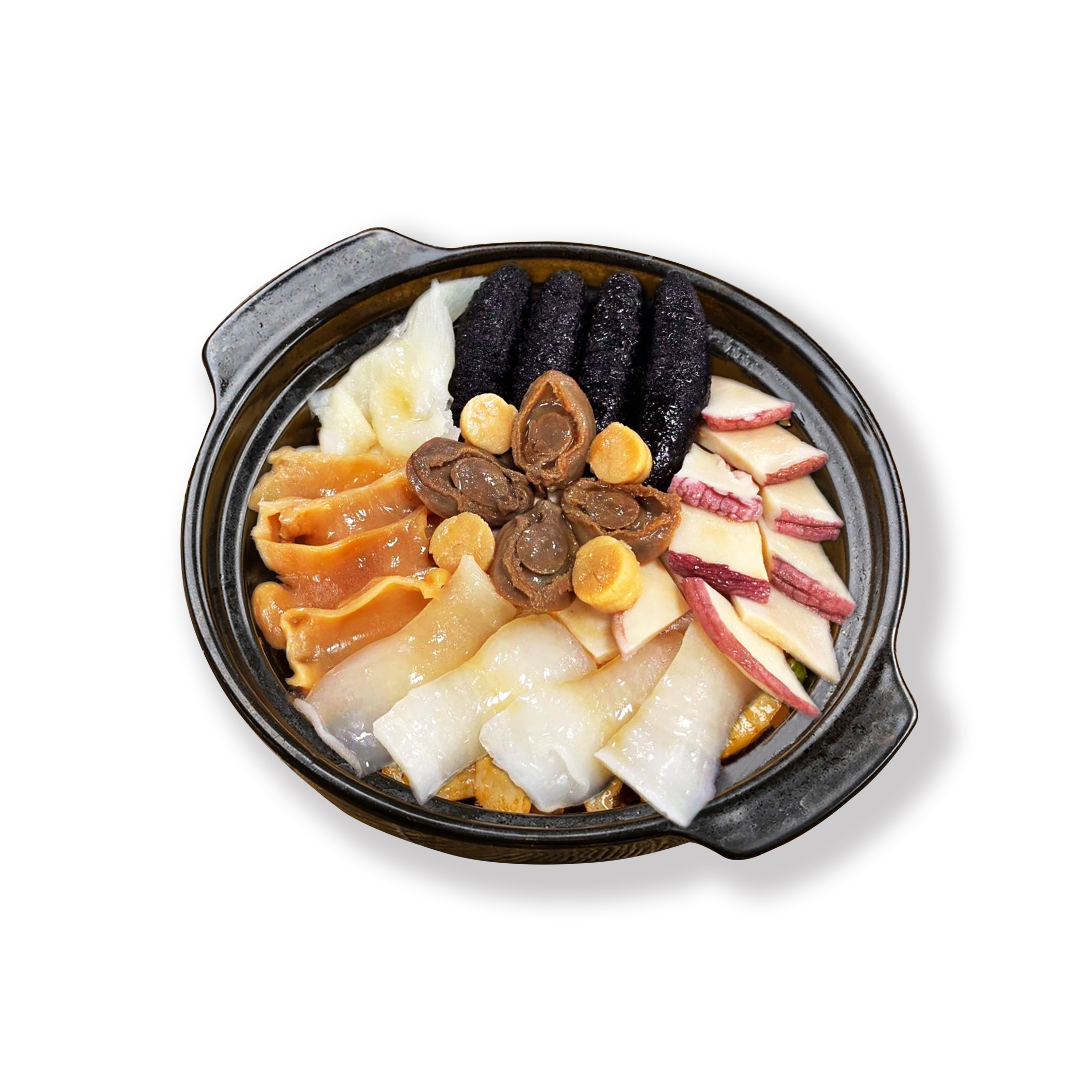 大連鮑80頭(4隻) 土耳其參70頭(4條) 鳳尾翅(100g) 瑤柱180頭(4粒) 鴨掌(4隻) 花膠(100g) 小花菇(4隻) 魚唇(150g) 螺片(150g) 鮑汁(700g) *凍品類商品因需恆溫保存,目前不提供送貨上門服務,僅限顧客自行前往門市取貨。